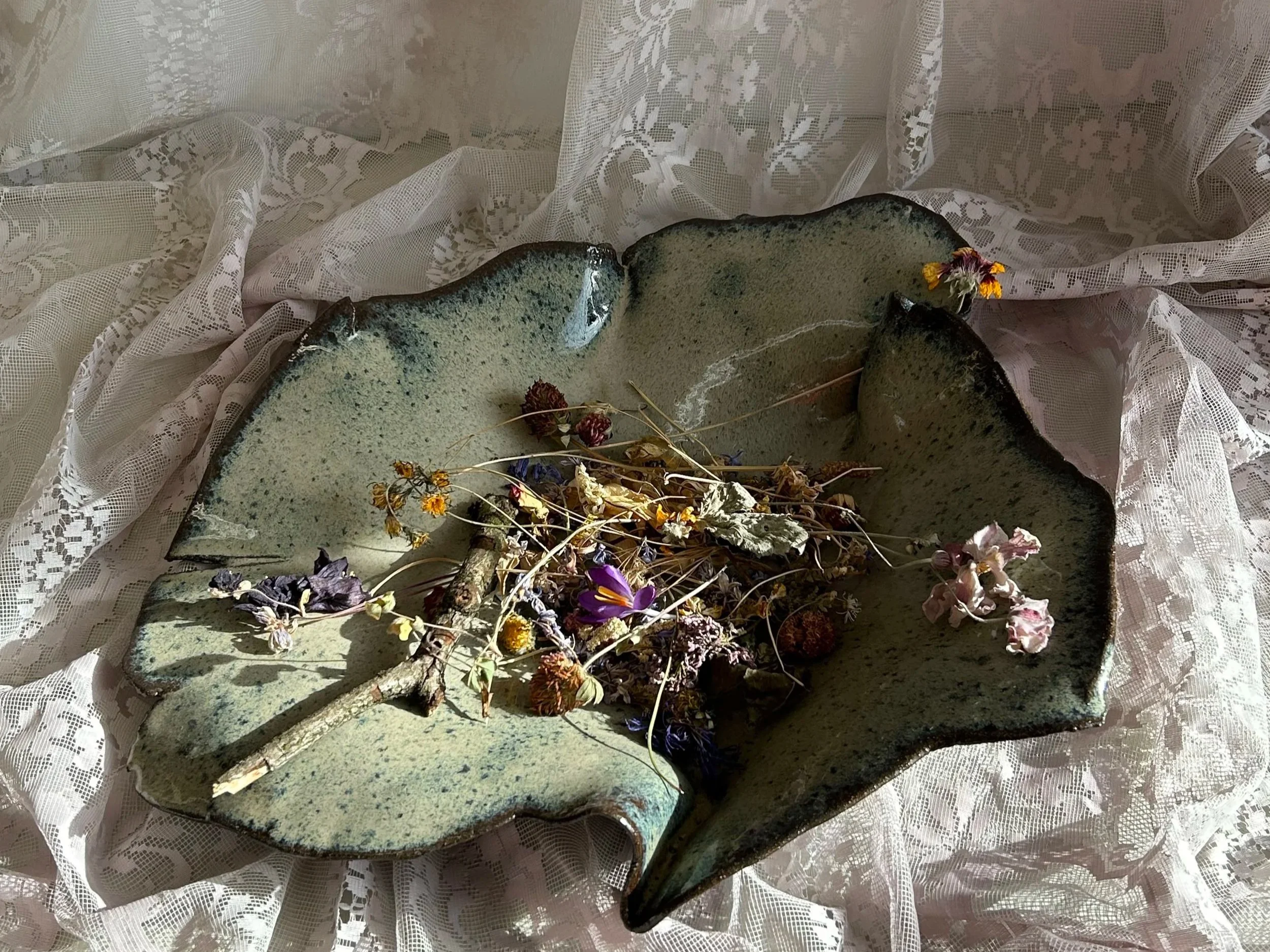 “I will hold all of Arto’s petals in the palm of my hand” (ceramic, organic material)