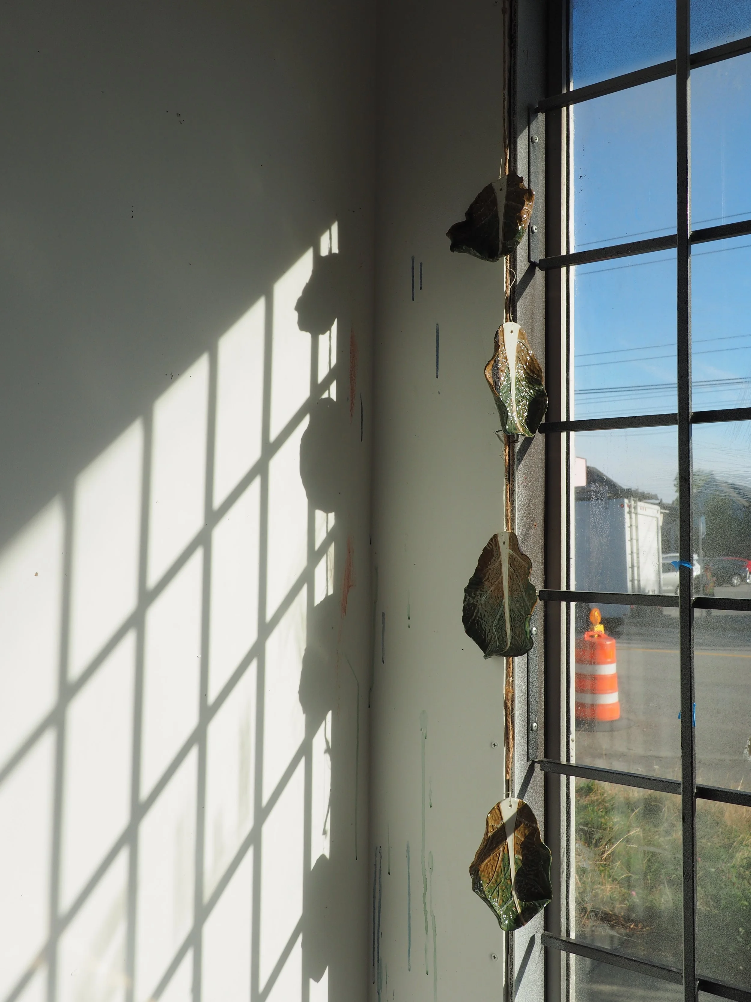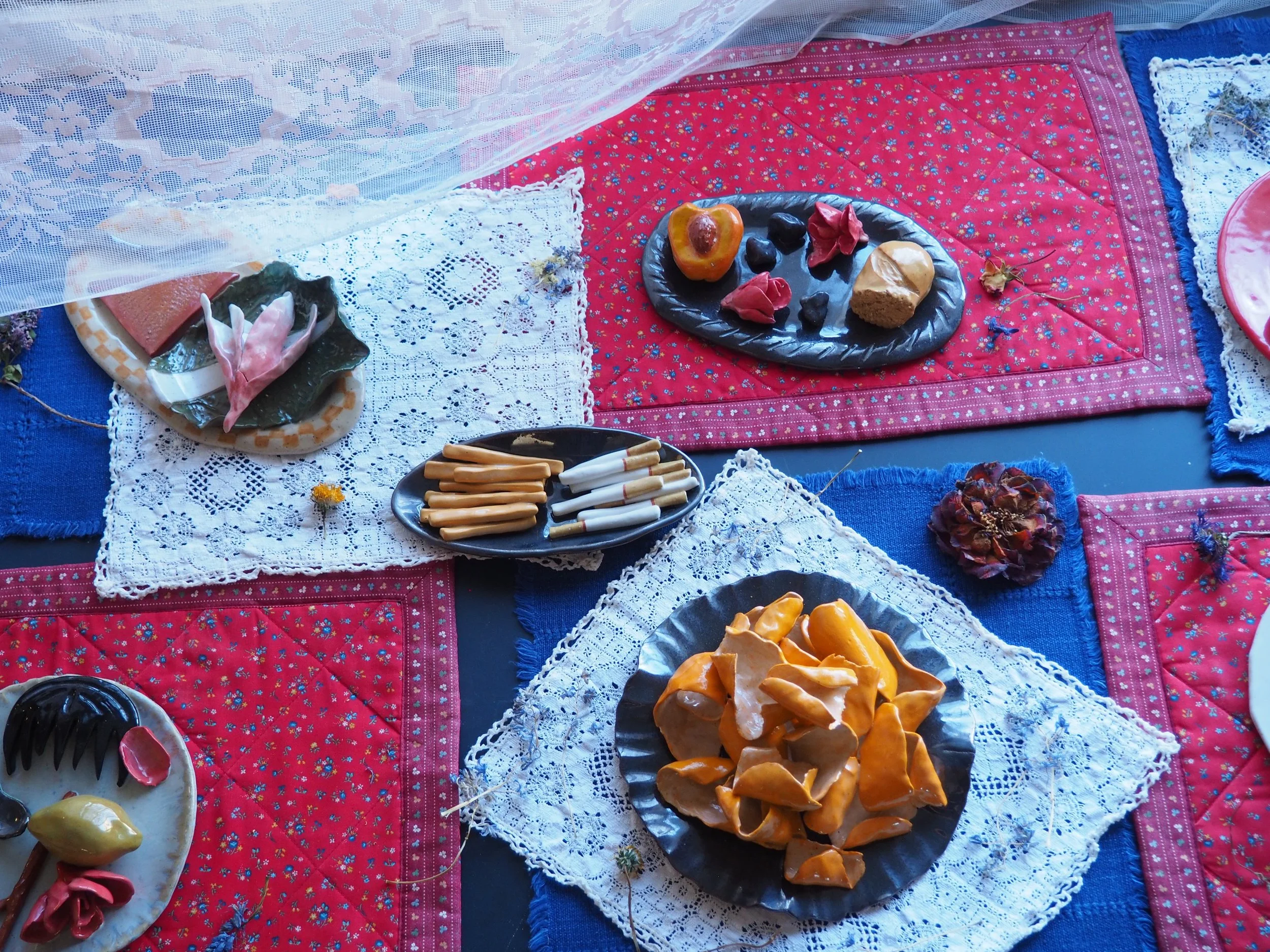 “Each twig is important, each rock is news” takes its title from Anne Sexton’s poem “Eighteen Days Without You”, written in 1969. The work here is a meditation on the mundane, on the small objects that fill our days and our homes and our plates. Rotting food, dying flowers, and the marking of time through decomposition and collection, ceramic sculptures, organic materials, collage, and found objects both communicate with each other and reconfigure themselves into unknowable entities – everyday items made unfamiliar. The works interrogate why we hold onto some things and not others. What is worthy of keeping? Are our identities defined by what we collect, and how do we give objects their meaning?