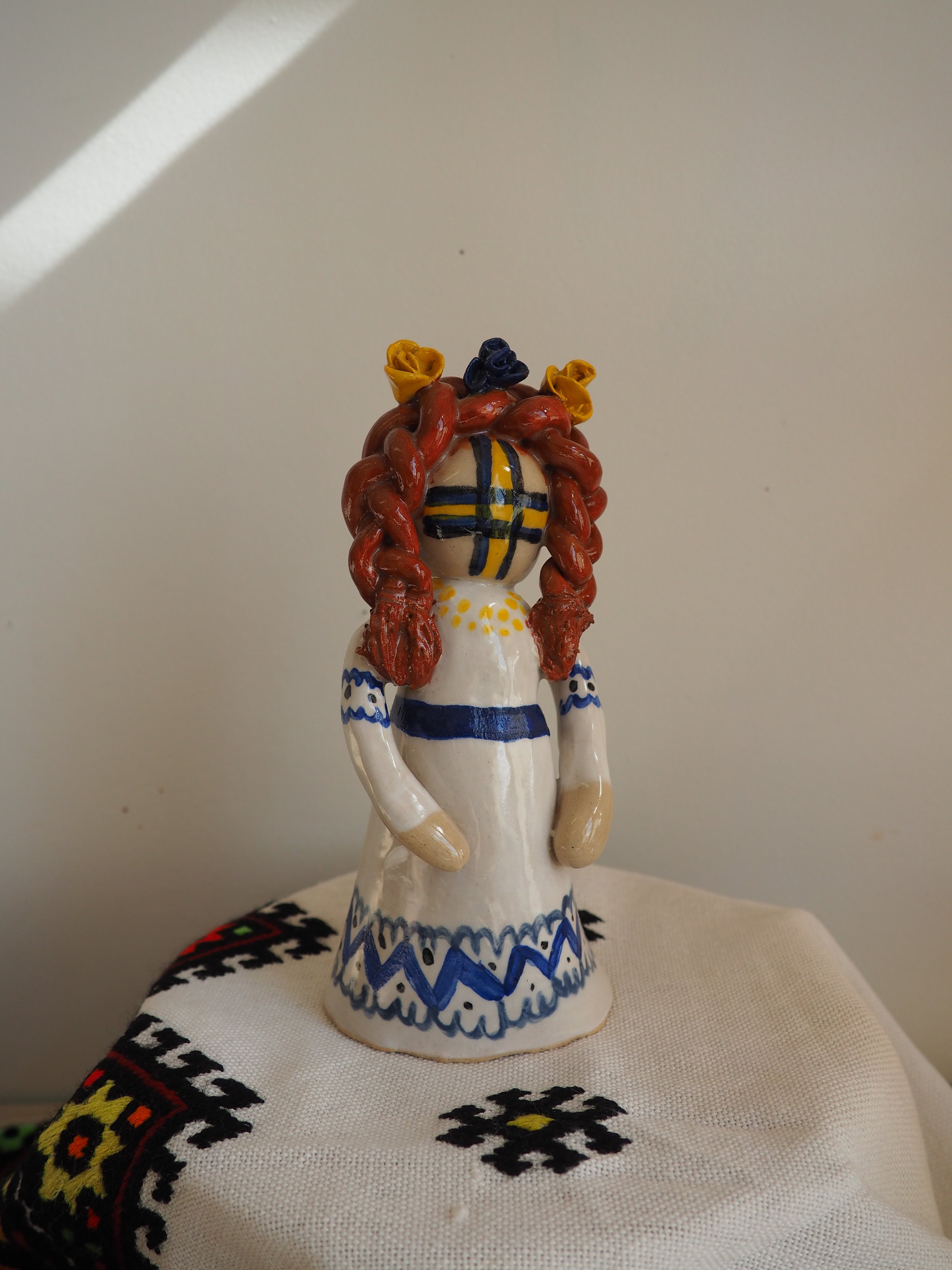 Combining ceramic sculpture, found objects, and video, this installation is a ceremony in itself – it is an attempt to rid my family of the curse through Ukrainian folkloric healing practices including the use of medicinal herbs, Motanka dolls, an Eastern Ukrainian Egg Ceremony, rushnyk, and a Wedding of the Dead.